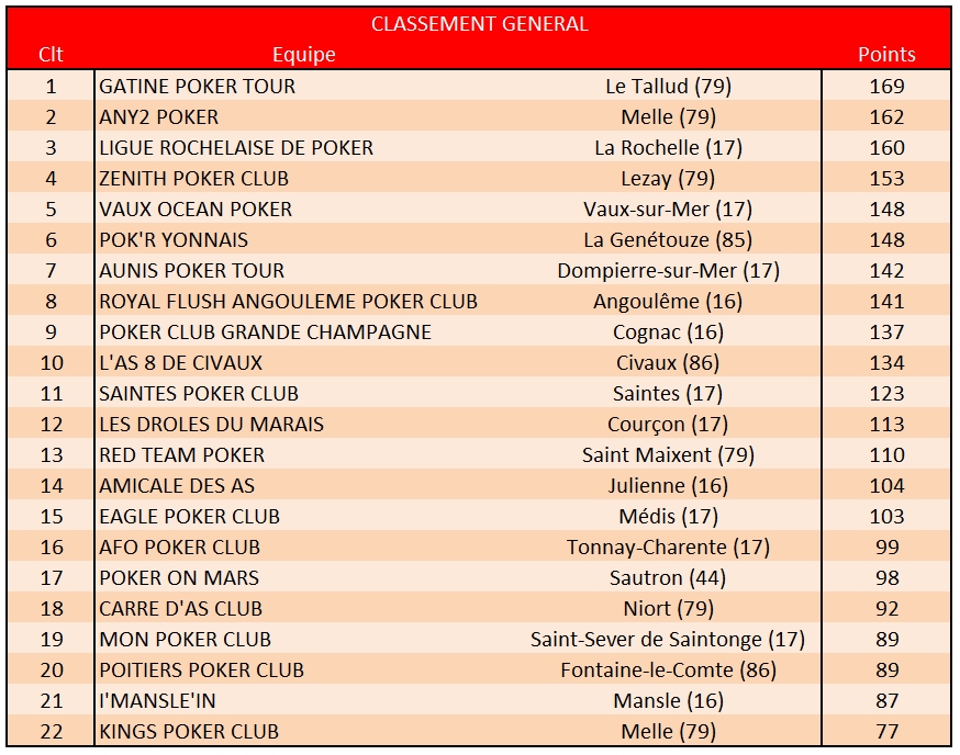 Voici le classement CFEPA de nos joueurs qui ont participé à au moins 1 Sit&Go.