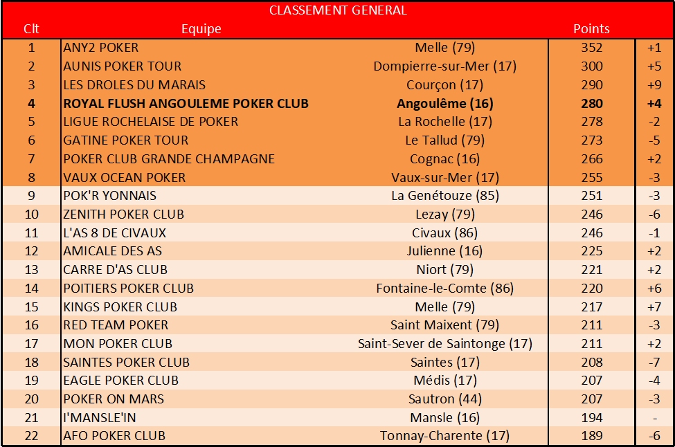 Voici le classement CFEPA de nos joueurs qui ont participé à au moins 1 Sit&Go.