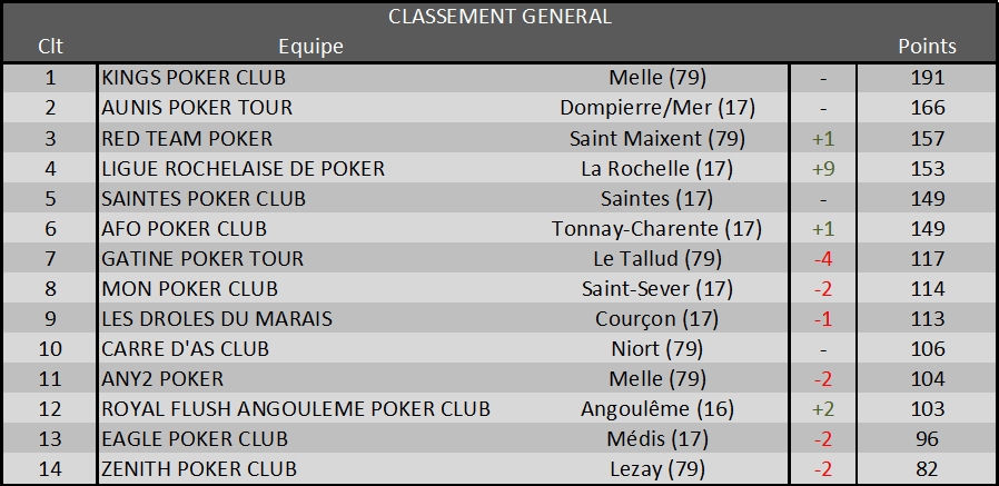 Voici le classement CREPP de nos joueurs qui ont participé à au moins 1 Sit&Go.